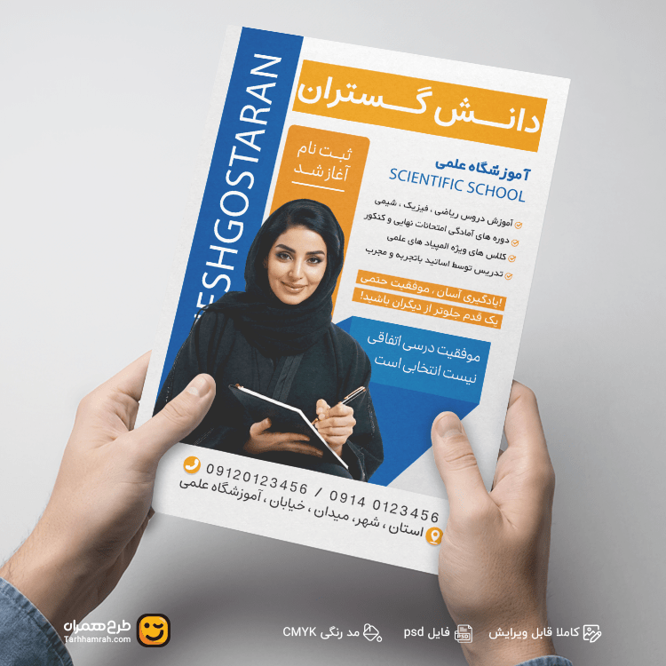 طرح لایه باز تراکت آموزشگاه علمی | معرفی و راهنمای استفاده از فایل لایهباز تبلیغاتی