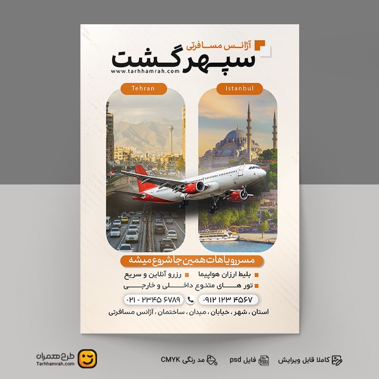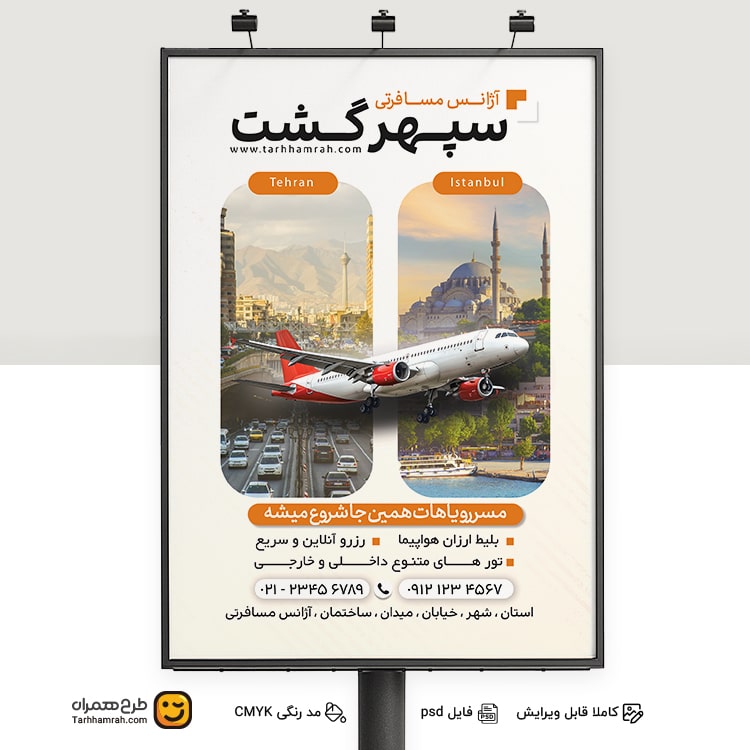 هدفمند برای تبلیغات آژانسهای مسافرتی: ترکیب تصاویر، رنگها و متنها به شکلی است که بیشترین تاثیر را بر مشتری میگذارد.